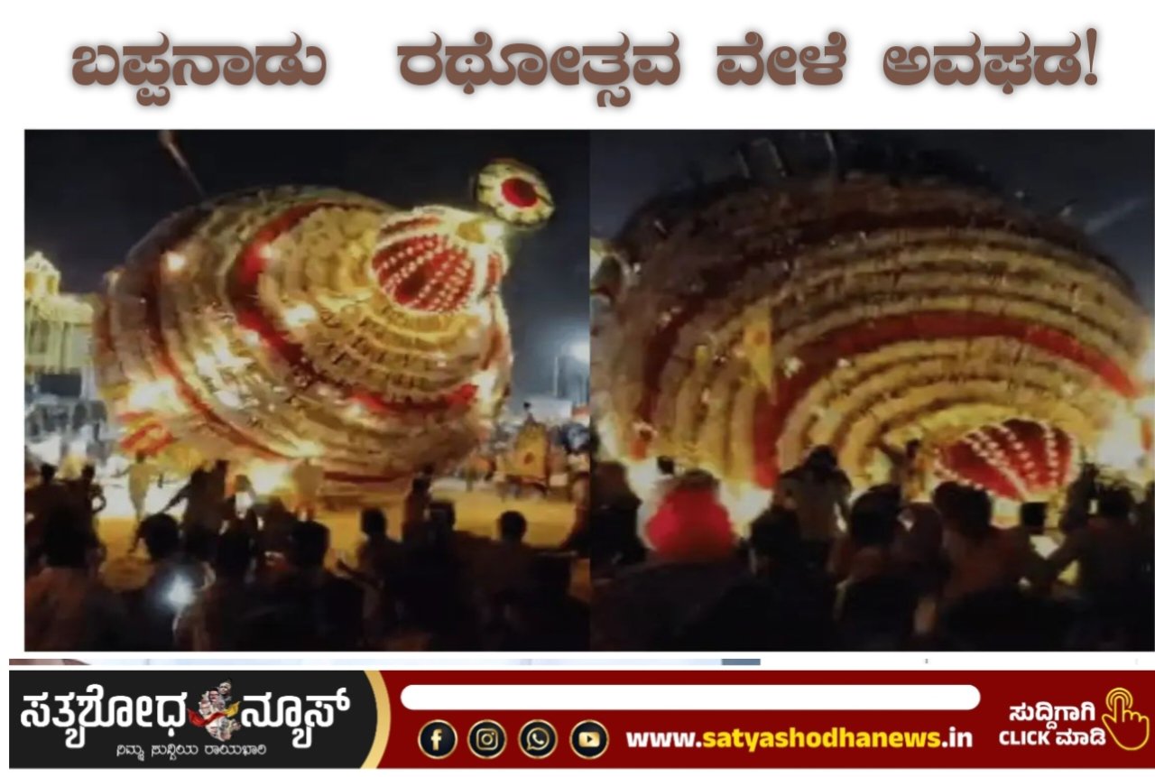 ಕಳೆದ ಶುಕ್ರವಾರ ಬಪ್ಪನಾಡು ಶ್ರೀದುರ್ಗಾಪರಮೇಶ್ವರಿ ದೇವಳದ ರಥೋತ್ಸವ ಅದ್ಧೂರಿಯಾಗಿ ಸಾಗಿತ್ತು. ರಥ ಬೀದಿಗಳಲ್ಲಿ ರಥೋತ್ಸವ ಸಾಗುತ್ತಿದ್ದ ವೇಳೆ ತೇರಿನ ಮೇಲ್ಭಾಗ ಏಕಾಏಕಿ ಕುಸಿದಿದೆ.
