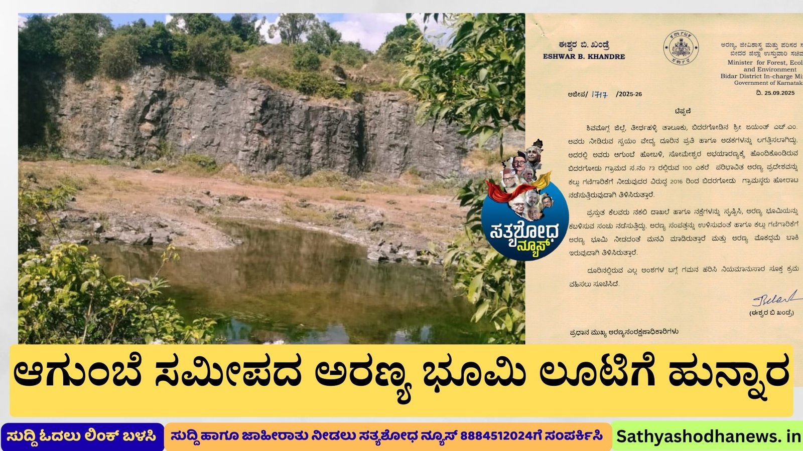 ತೀರ್ಥಹಳ್ಳಿ: ಬಿದರಗೋಡು ಸರ್ವೇ ನಂ 73ರಲ್ಲಿ ಸ್ಟೋನ್ ಕ್ರಷರ್ ( ಕಪ್ಪು ಕಲ್ಲು ಕ್ವಾರಿ ) ಶುರು ಮಾಡುವ ಹಿನ್ನಲೆಯಲ್ಲಿ ಗ್ರಾಮಸ್ಥರು ಕ್ರಷರ್ಗೆ ಅವಕಾಶ ನೀಡದಿರುವಂತೆ ಸಚಿವ ಈಶ್ವರ ಖಂಡ್ರೆರಿಗೆ ಪತ್ರ ಬರೆದಿದ್ದಾರೆ. ಒಟ್ಟು 239 ಎಕರೆ ಜಮೀನಿದ್ದು, ಇದರಲ್ಲಿ 100 ಎಕರೆ ಪರಿಭಾವಿತ ಅರಣ್ಯವಿದೆ. ಇದನ್ನು ಗುರುತಿಸದೇ ಈ ಭೂಮಿಯಲ್ಲಿ 17 ಎಕರೆಯನ್ನು ಕ್ರಷರ್ ಗೆ ನೀಡಲು ಕಂದಾಯ & ಅರಣ್ಯ ಇಲಾಖೆ ಅಧಿಕಾರಿಗಳೇ ಆಸಕ್ತರಾಗಿದ್ದಾರೆ ಎಂಬುದು ಗ್ರಾಮಸ್ಥರ ಆತಂಕ.