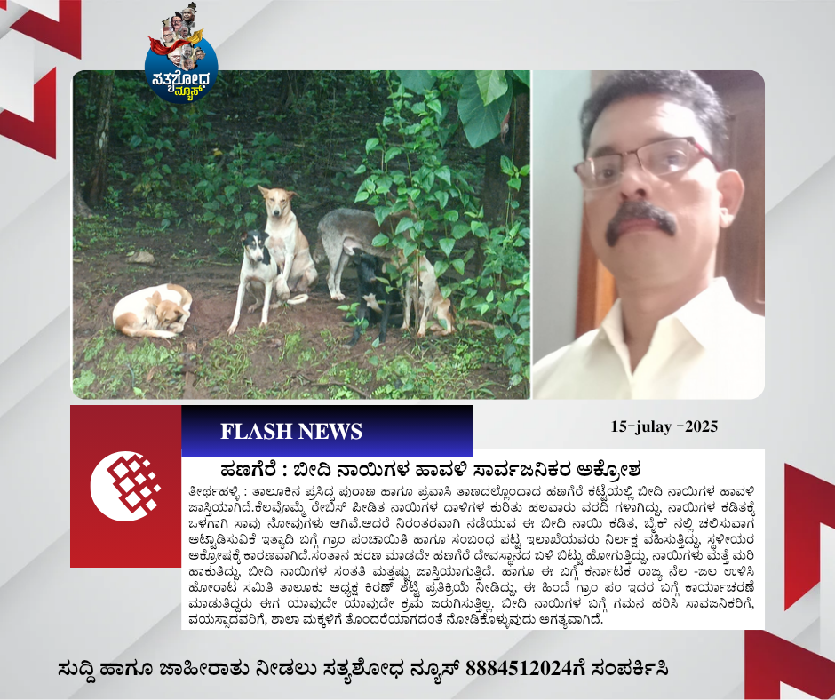 ಸ್ಥಳೀಯರ ಅಕ್ರೋಷಕ್ಕೆ ಕಾರಣವಾಗಿದೆ.ಸಂತಾನ ಹರಣ ಮಾಡದೇ ಹಣಗೆರೆ ದೇವಸ್ಥಾನದ ಬಳಿ ಬಿಟ್ಟು ಹೋಗುತ್ತಿದ್ದು, ನಾಯಿಗಳು ಮತ್ತೆ ಮರಿ ಹಾಕುತಿದ್ದು, ಬೀದಿ ನಾಯಿಗಳ ಸಂತತಿ ಮತ್ತಷ್ಟು ಜಾಸ್ತಿಯಾಗುತ್ತಿದೆ.