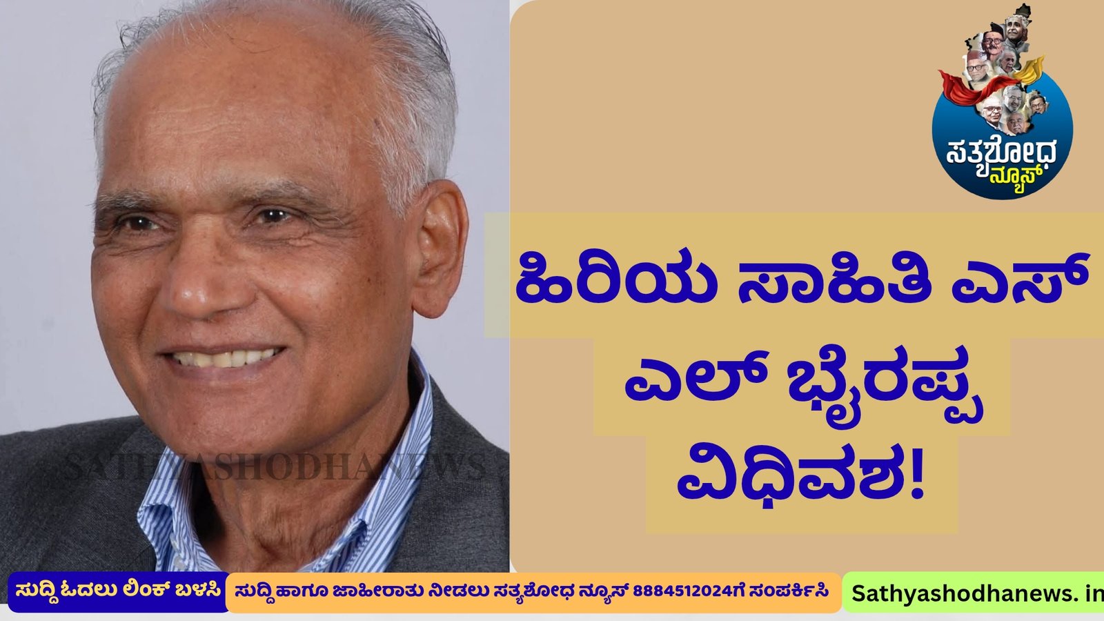 ಕನ್ನಡದ ಅಗ್ರಗಣ್ಯ ಕಾದಂಬರಿಕಾರರು, ಸರಸ್ವತಿ ಸಮ್ಮಾನ್ ಪುರಸ್ಕೃತ ಖ್ಯಾತ ಸಾಹಿತಿಗಳಾಗಿದ್ದ ಪದ್ಮಭೂಷಣ ಶ್ರೀ ಎಸ್. ಎಲ್. ಭೈರಪ್ಪ (94)ನಿಧನರಾಗಿದ್ದಾರೆ.