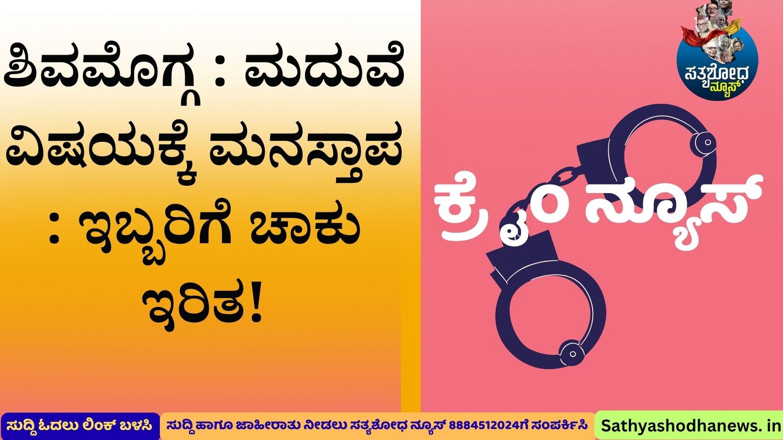ಶಿವಮೊಗ್ಗ : ಮದುವೆ ವಿಚಾರದಲ್ಲಿ ಮನಸ್ತಾಪ ಹಿನ್ನಲೆಯಲ್ಲಿ ಶಿವಮೊಗ್ಗ ನಗರದಲ್ಲಿ ಇಬ್ಬರು ಯುವಕರಿಗೆ ಮಾರಕಾಸ್ತ್ರದಿಂದ ಇರಿಯಲಾಗಿದ್ದು . ಗಂಭೀರ ಗಾಯಗೊಂಡಿರುವ ಯುವಕರನ್ನು ಖಾಸಗಿ ಅಸ್ಪತ್ರೆಗೆ ದಾಖಲು ಮಾಡಲಾಗಿದೆ ಎಂದು ಎಸ್ ಪಿ ಮಿಥುನ್ ಕುಮಾರ್ ತಿಳಿಸಿದ್ದಾರೆ.