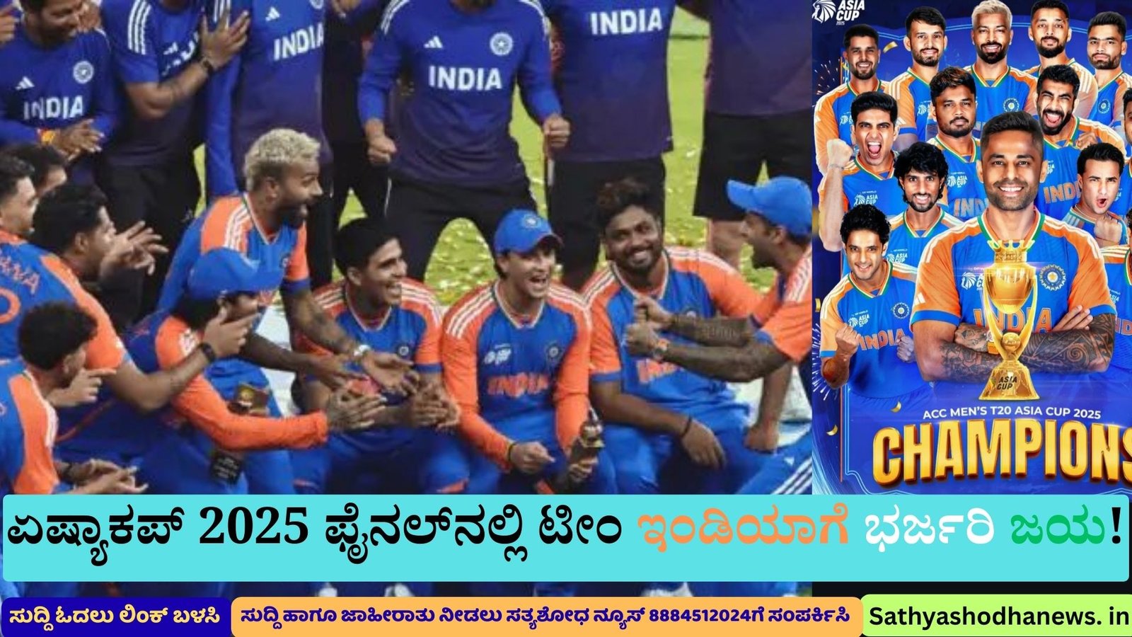 ದುಬೈ ಅಂತಾರಾಷ್ಟ್ರೀಯ ಕ್ರಿಕೆಟ್ ಮೈದಾನದಲ್ಲಿ ನಡೆದ ಏಷ್ಯಾಕಪ್ 2025 ಫೈನಲ್‌ನಲ್ಲಿ ಟೀಂ ಇಂಡಿಯಾ ಪಾಕಿಸ್ತಾನವನ್ನು 5 ವಿಕೆಟ್‌ಗಳಿಂದ ಮಣಿಸಿ ದಾಖಲೆಯ 9ನೇ ಬಾರಿಗೆ ಟ್ರೋಫಿ ತನ್ನದಾಗಿಸಿಕೊಂಡಿದೆ. ಈ ಗೆಲುವಿನಿಂದ ಭಾರತ ಏಷ್ಯಾಕಪ್‌ನಲ್ಲಿ ಹ್ಯಾಟ್ರಿಕ್ ಜಯ ಸಾಧಿಸಿದೆ.ಟೀಂ ಇಂಡಿಯಾ ಗೆಲುವಿನ ಬಳಿಕ ದೇಶಾದ್ಯಂತ ಸಂಭ್ರಮದ ವಾತಾವರಣ ನಿರ್ಮಾಣವಾಯಿತು.