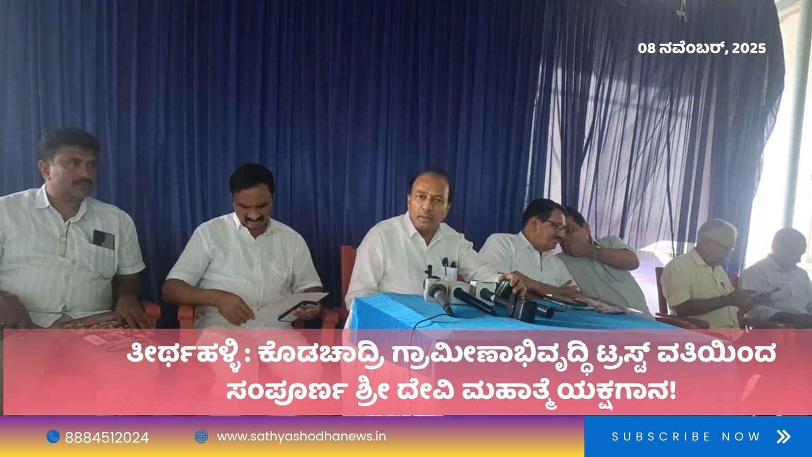 ಪಾವಂಜೆ ನಾಗವೃಜ ಕ್ಷೇತ್ರ ಶ್ರೀ ಜ್ಞಾನಶಕ್ತಿ ಸುಬ್ರಹ್ಮಣ್ಯ ಸ್ವಾಮಿ ಕೃಪಾಪೋಷಿತ ಯಕ್ಷಗಾನ ಮಂಡಳಿ ಇವರು ಆಡಿ ತೋರಿಸುವ ಕಾಲಮಿತಿ “ಸಂಪೂರ್ಣ ಶ್ರೀ ದೇವಿ ಮಹಾತ್ಮೆ ” ಎಂಬ ಯಕ್ಷಗಾನದ ಕಥಾ ಭಾಗವನ್ನು ಸಂಜೆ 6 ಗಂಟೆಯಿಂದ ಸು 5ತಾಸು ನವೆಂಬರ್ 11 ರ ಮಂಗಳವಾರ ನ್ಯಾಷನಲ್ ಹೈಸ್ಕೂಲ್ ಮೈದಾನದ ಕೋಣಂದೂರು ಇಲ್ಲಿ ನಡೆಯಲಿದೆ. ಎಂದು ಕೊಡಚಾದ್ರಿ ಗ್ರಾಮೀಣಾಭಿವೃದ್ಧಿ ಟ್ರಸ್ಟ್ ಅಧ್ಯಕ್ಷರಾದ ಆರ್.ಎಂ.ಮಂಜುನಾಥ ಗೌಡ ತಿಳಿಸಿದರು.