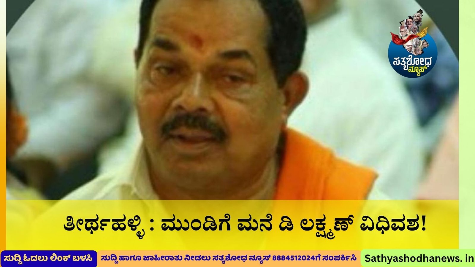 ತೀರ್ಥಹಳ್ಳಿ :ಕಾಂಗ್ರೆಸ್ ಪಕ್ಷದ ಹಿರಿಯ ನಾಯಕರು,ಮಾಜಿ ಜಿಲ್ಲಾ ಪಂಚಾಯತ್ ಸದಸ್ಯರು, ಈಡಿಗ ಸಂಘದ ಮಾಜಿ ಅಧ್ಯಕ್ಷರು,ಹಾಲಿ ಸದಸ್ಯರಾದ ಮುಂಡಿಗೆಮನೆ ಡಿ ಲಕ್ಷ್ಮಣ್ ವಯೋಸಹಜ ಖಾಯಿಲೆಯಿಂದ ಅ.04 ರಂದು ವಿಧಿವಶರಾಗಿದ್ದಾರೆ.