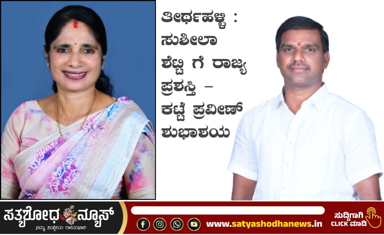 ತೀರ್ಥಹಳ್ಳಿ : ತಾಲೂಕಿನ ಪಟ್ಟಣ ಪಂಚಾಯತ್ ನ ಮಾಜಿ ಅಧ್ಯಕ್ಷರು ಹಾಗೂ ಸಮಾಜ ಸೇವಕಿಯಾದ ಪಿ ಸುಶೀಲಾ ಶೆಟ್ಟಿ ಇವರಿಗೆ ಅನ್ವೇಷಣೆ ಸಂಸ್ಕೃತಿಕ ಅಕಾಡೆಮಿ ವತಿಯಿಂದ ದಿ 02 – 03 – 2025 ರಂದು ರವೀಂದ್ರ ಕಲಾ ಕ್ಷೇತ್ರದಲ್ಲಿ ನೀಡಿ ಗೌರವಿಸಲಿದೆ.